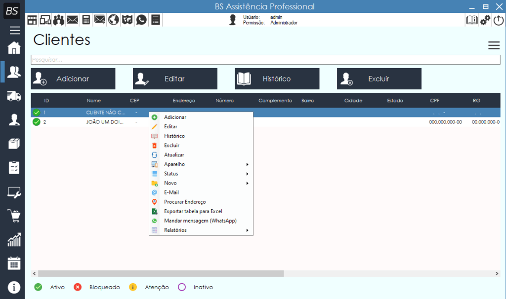 - Histórico dos clientes