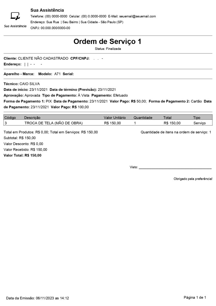 - Logomarca da empresa nas impressões de ordens de serviço, vendas e orçamentos