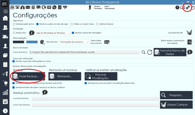 - Clique em “Fazer Backup”.