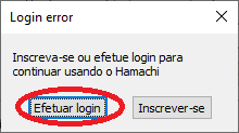 Caso não tenha efetuado o login na conta que acabou de criar, o Hamachi pode pedir para acessar a mesma, por isso clique em “Efetuar login“, depois acesse sua conta.