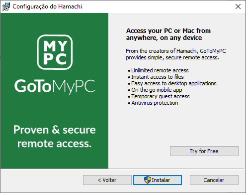 Após a instalação abra o mesmo (caso não tenha sido criado um ícone na área de trabalho, vá até menu iniciar e pesquise por “Hamachi”).